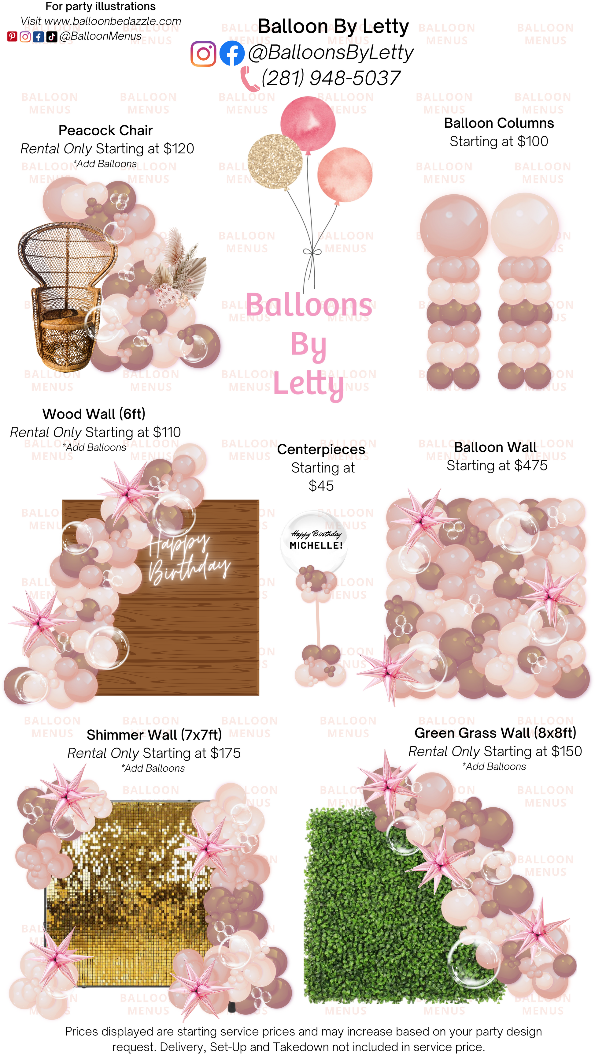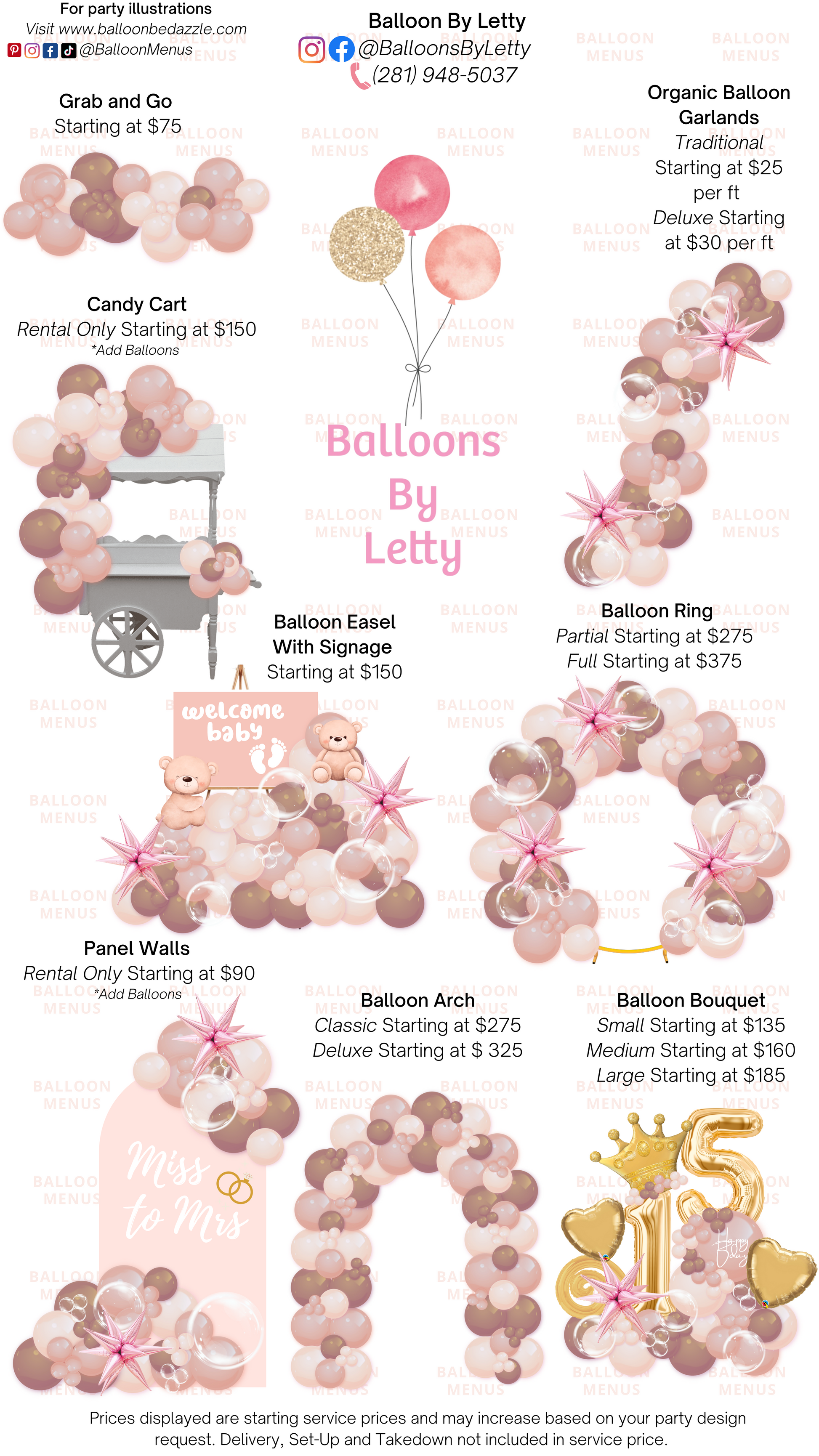 This is a custom, editable, downloadable balloon menu made specially for Balloons By Letty and is not for retail