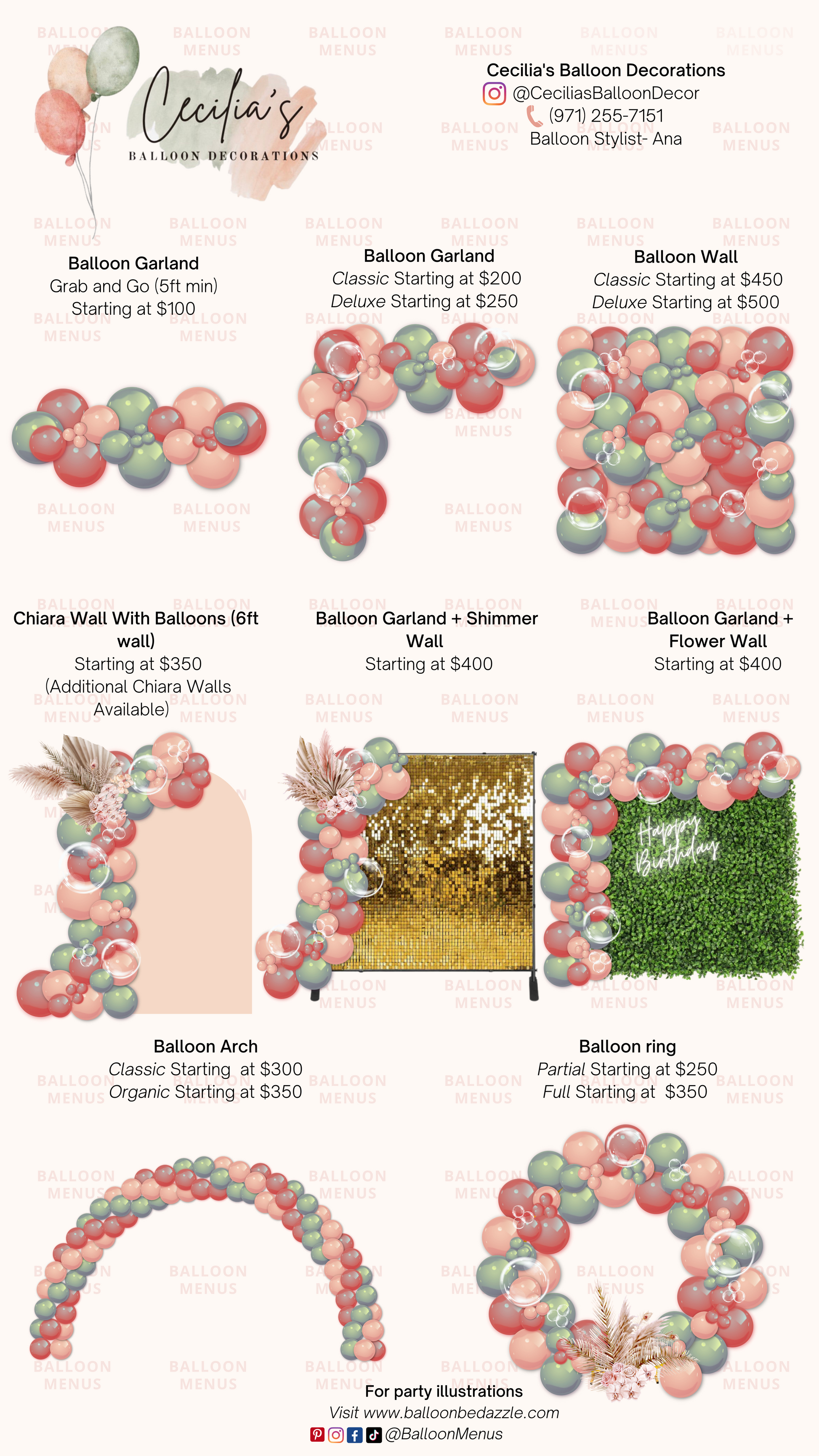 Cecilia’s Balloon Decorations - Client Balloon Menu