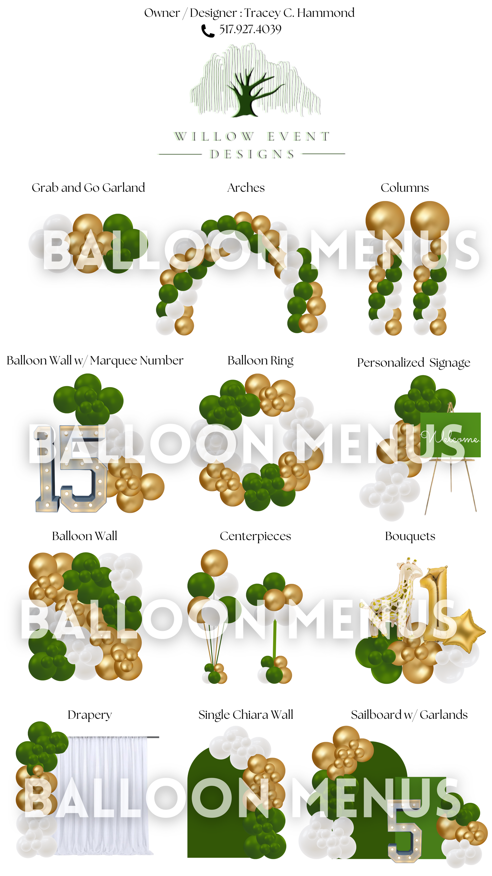 Willow Event Designs And Rentals LLC- Client Balloon Menu
