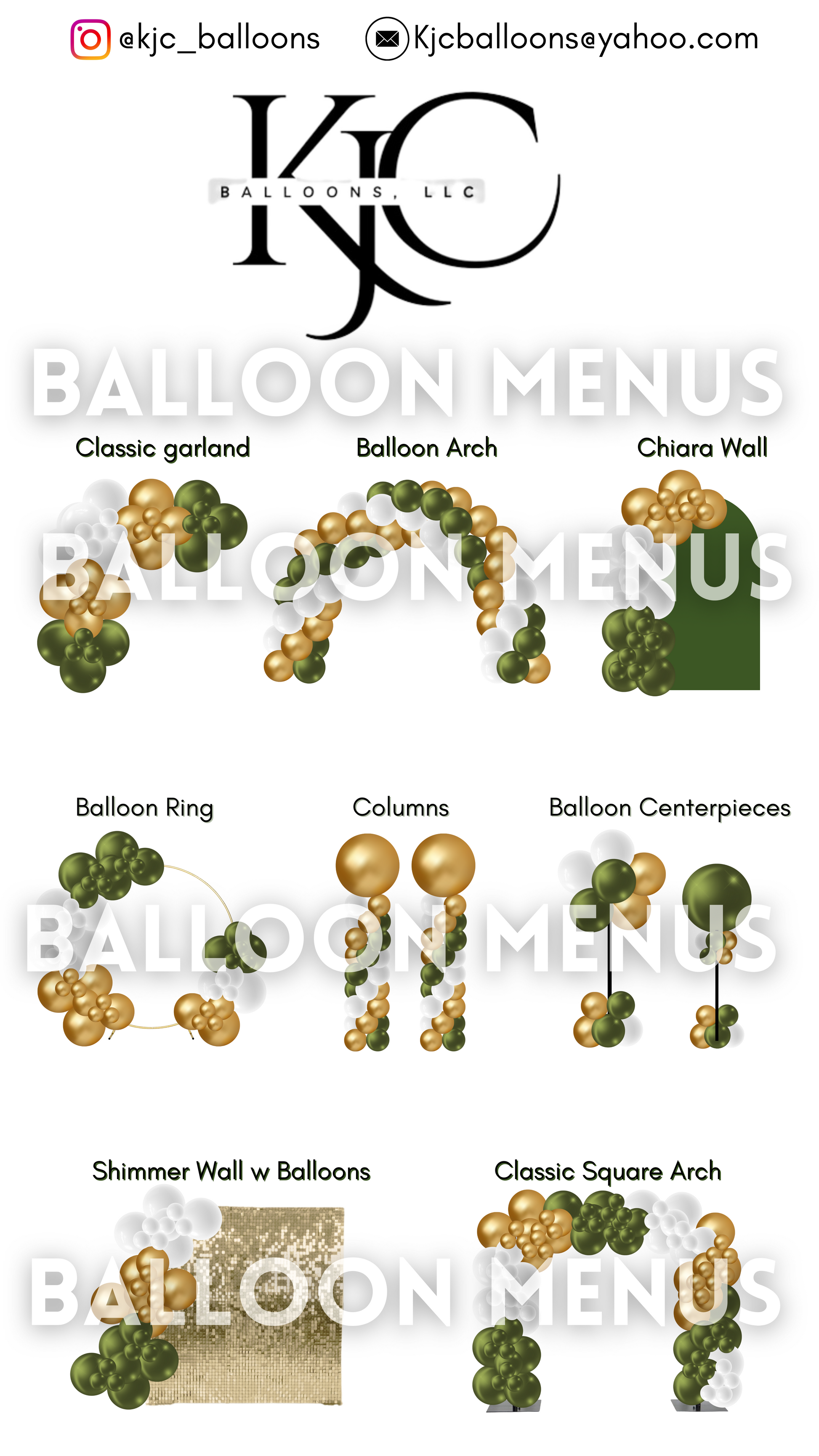 This is a custom, editable, downloadable balloon menu made specially for KJC Balloons, LLC and is not for retail