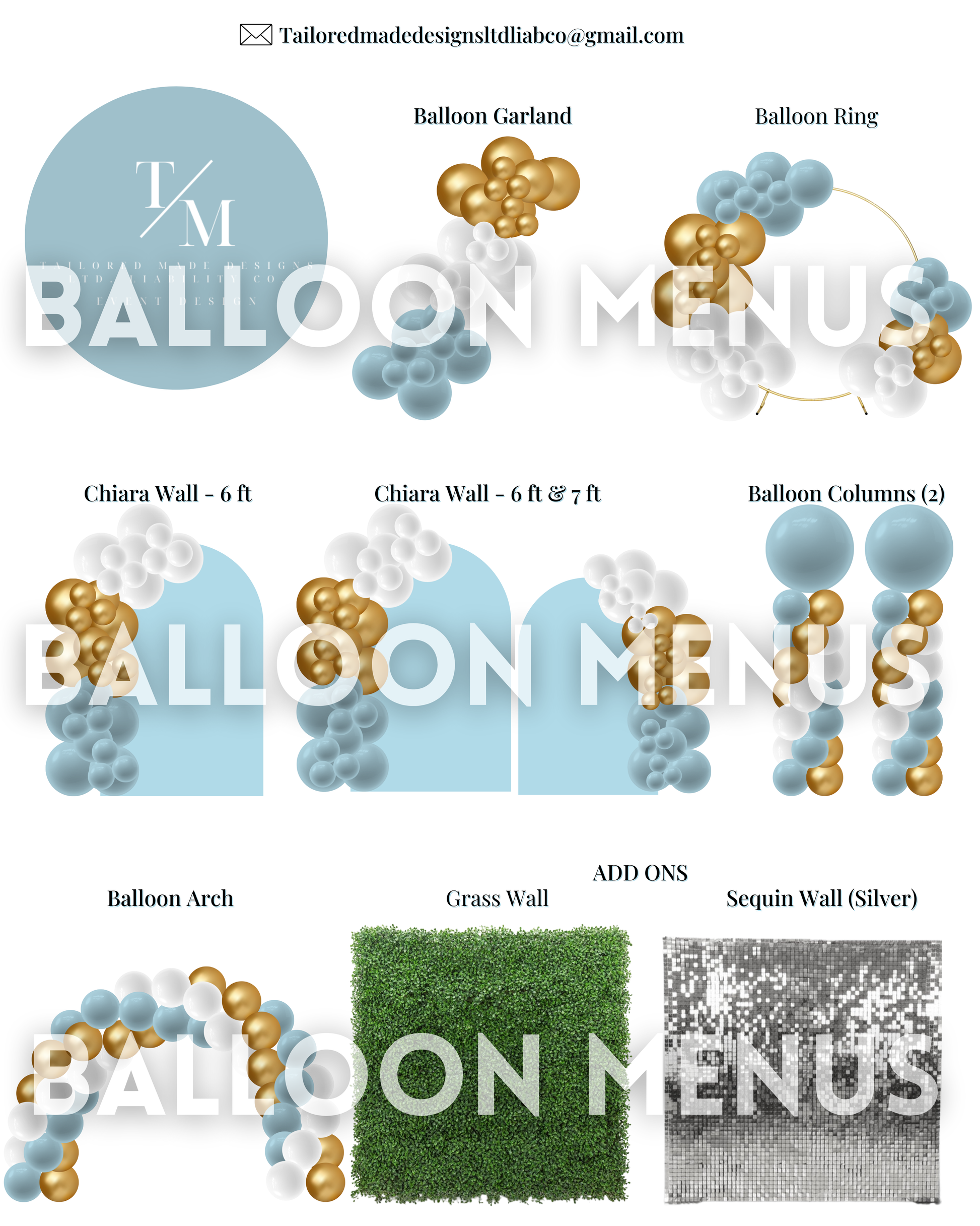 This is a custom, editable, downloadable balloon menu made specially for Tailored Made Designs and is not for retail