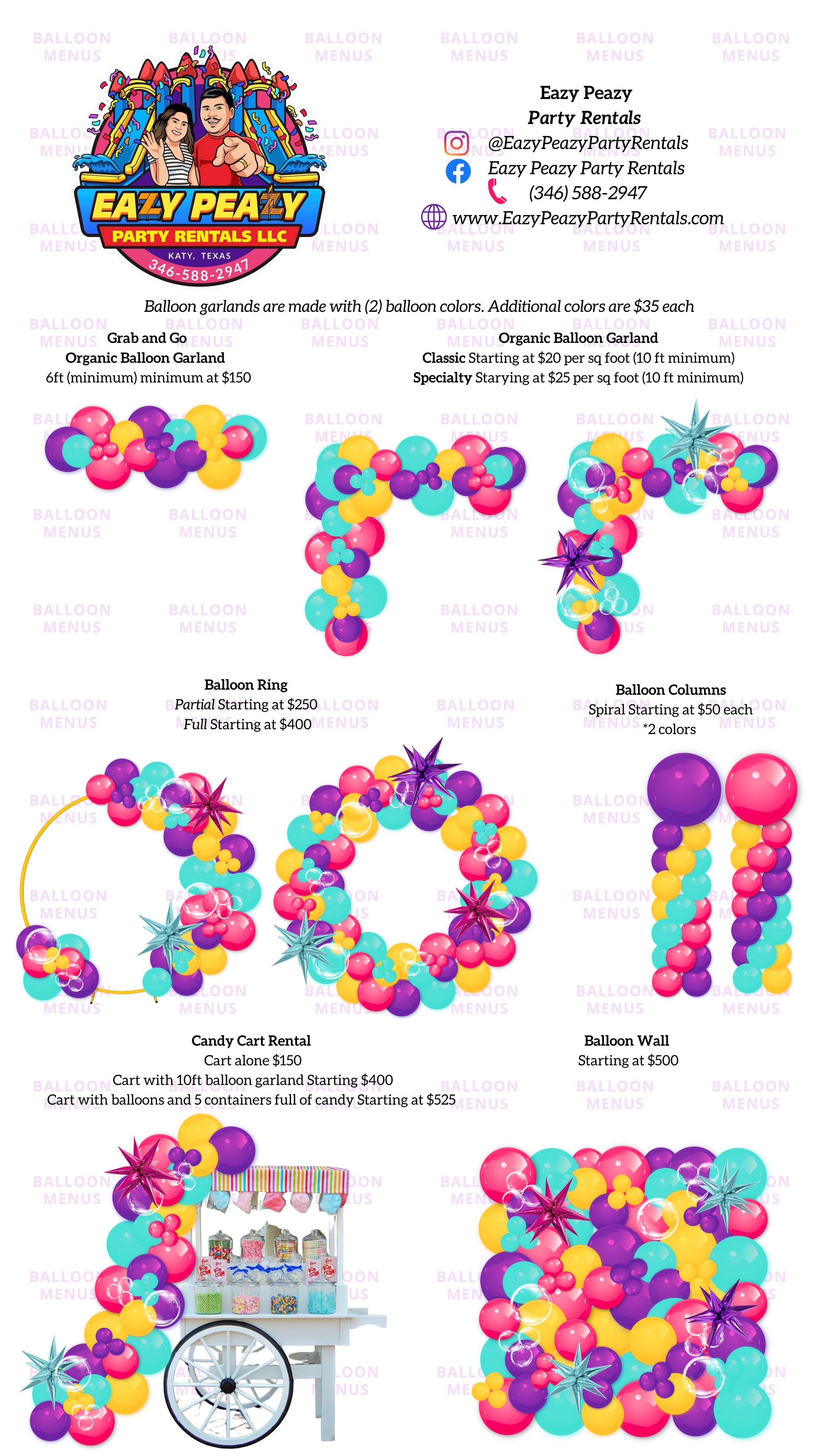 This is a custom, editable, downloadable balloon menu made specially for Eazy Peazy Party Rentals and is not for retail