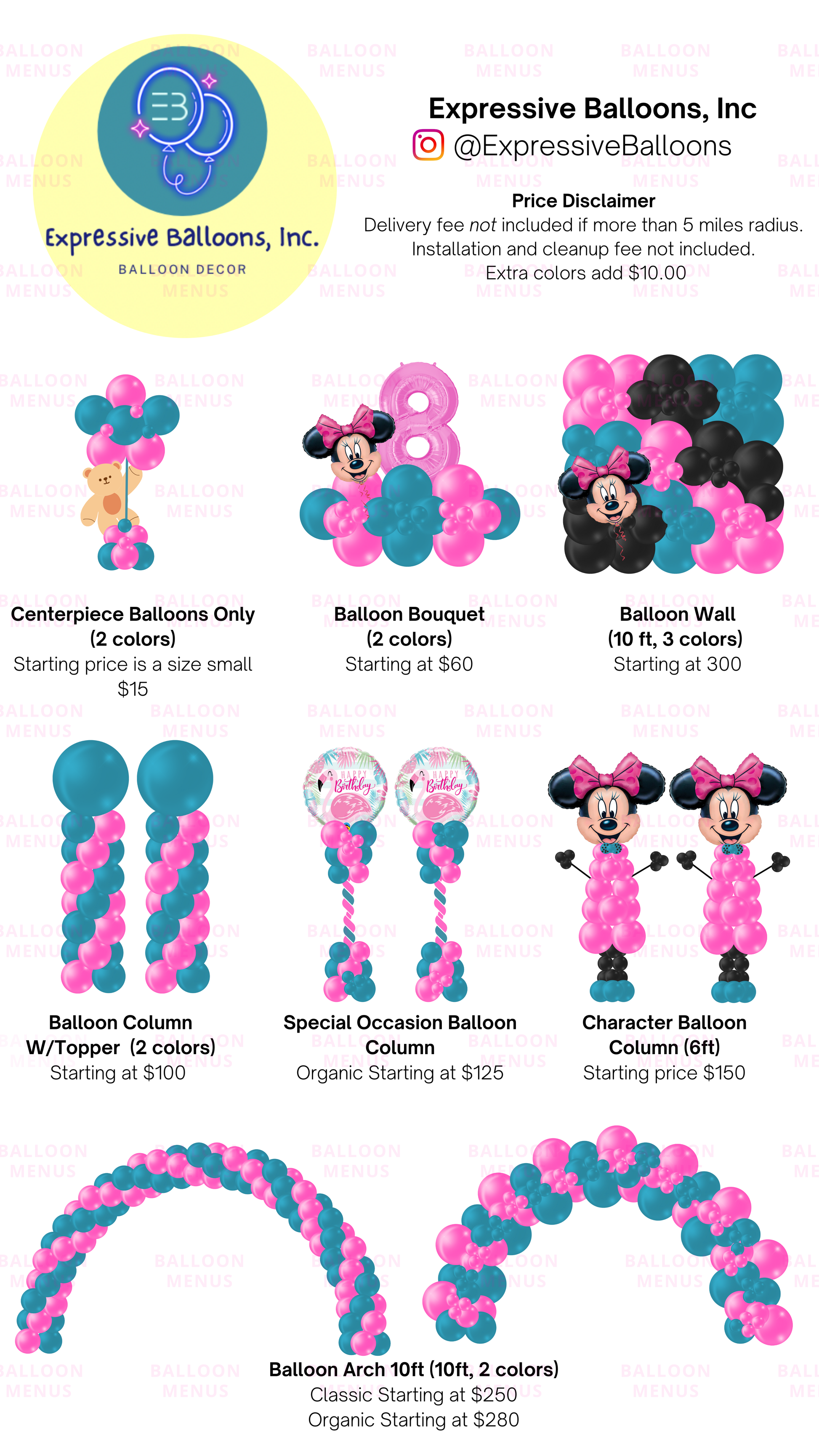 This is a custom, editable, downloadable balloon menu made specially for Expressive Balloons Inc and is not for retail