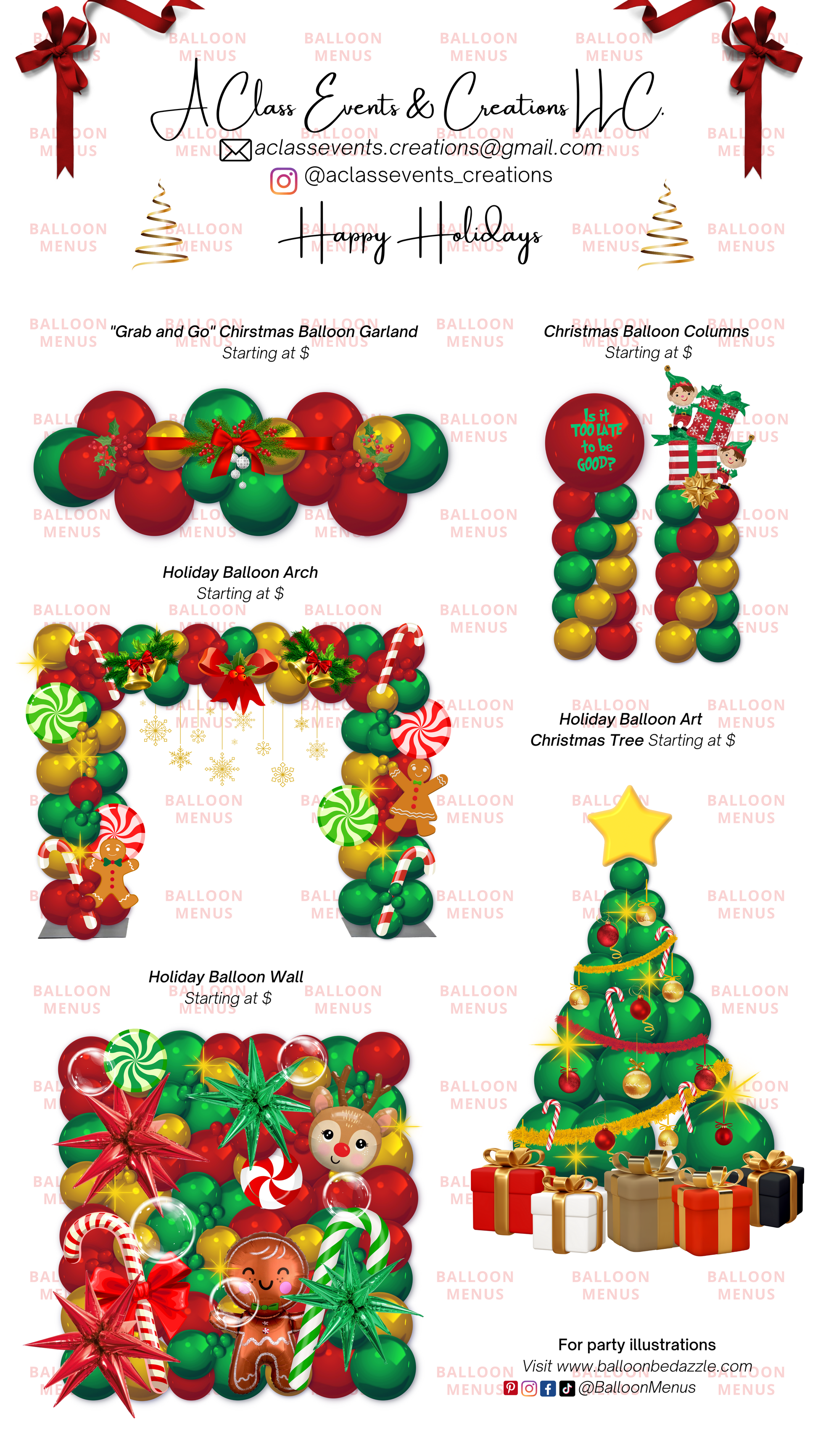 This is a custom, editable, downloadable balloon menu made specially for A Class Events & Creations LLC and is not for retail