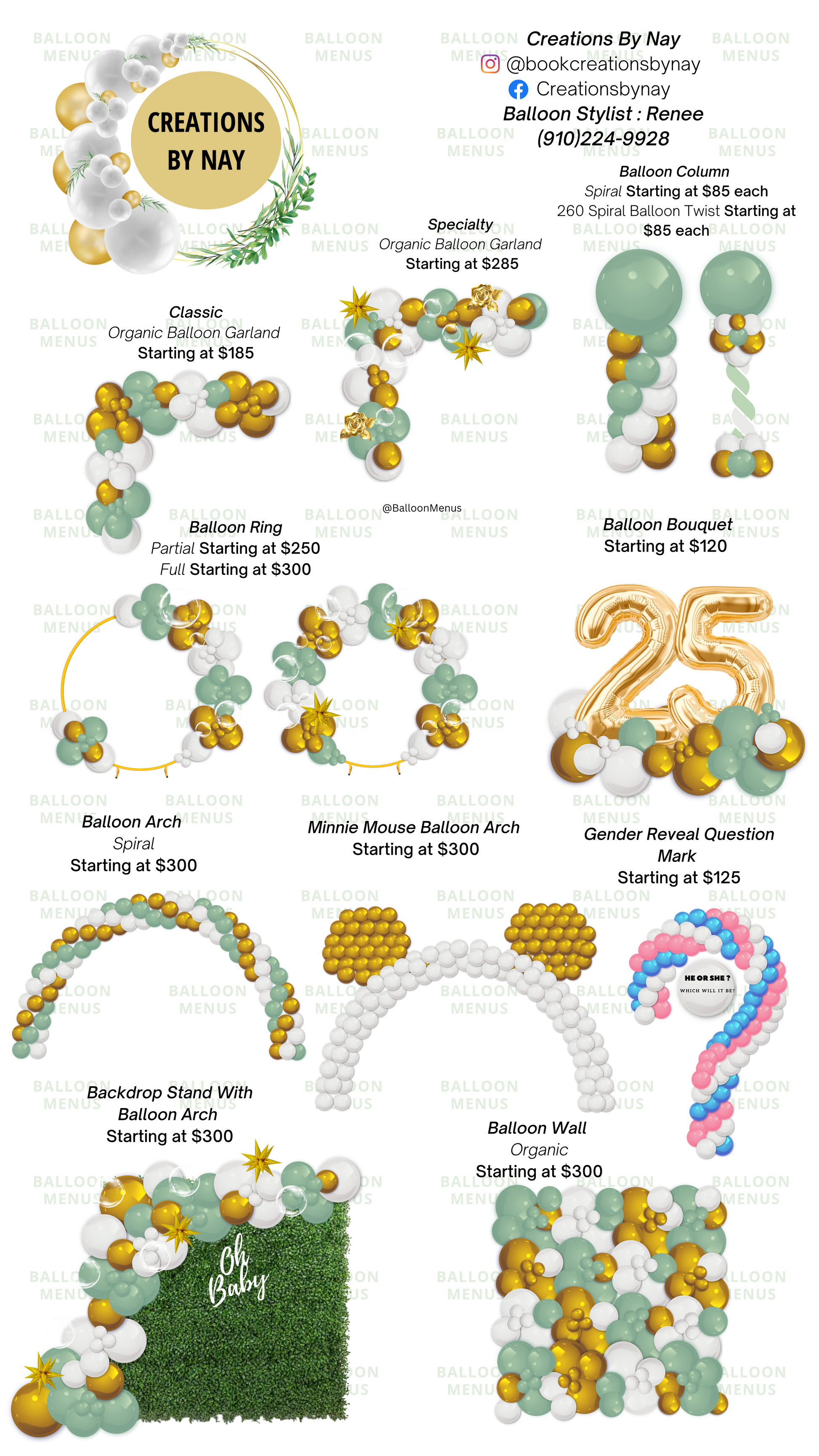 Creations By Nay - Client Balloon Menu