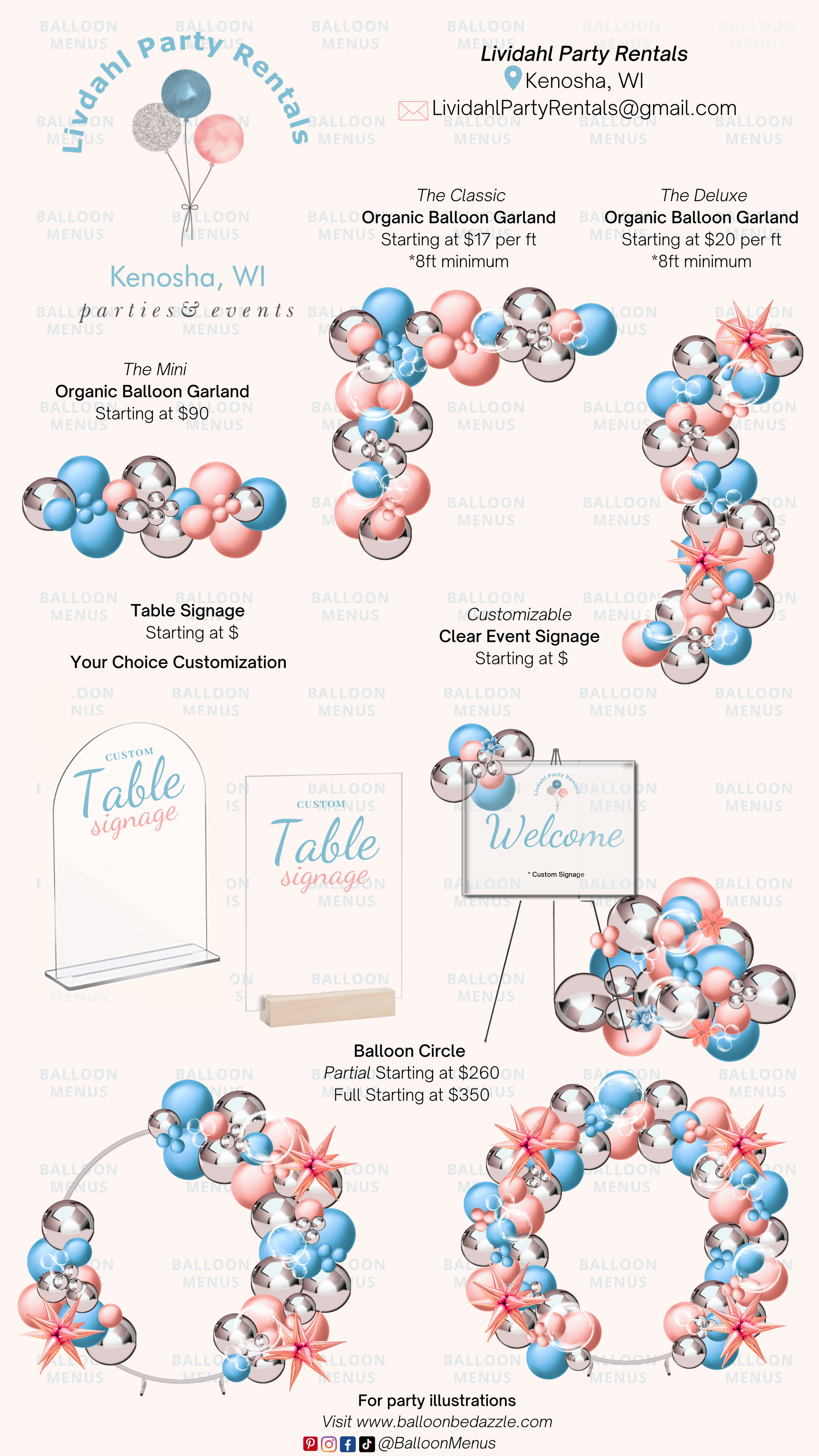 This is a custom, editable, downloadable balloon menu made specially for Lividahl Party Rentals and is not for retail