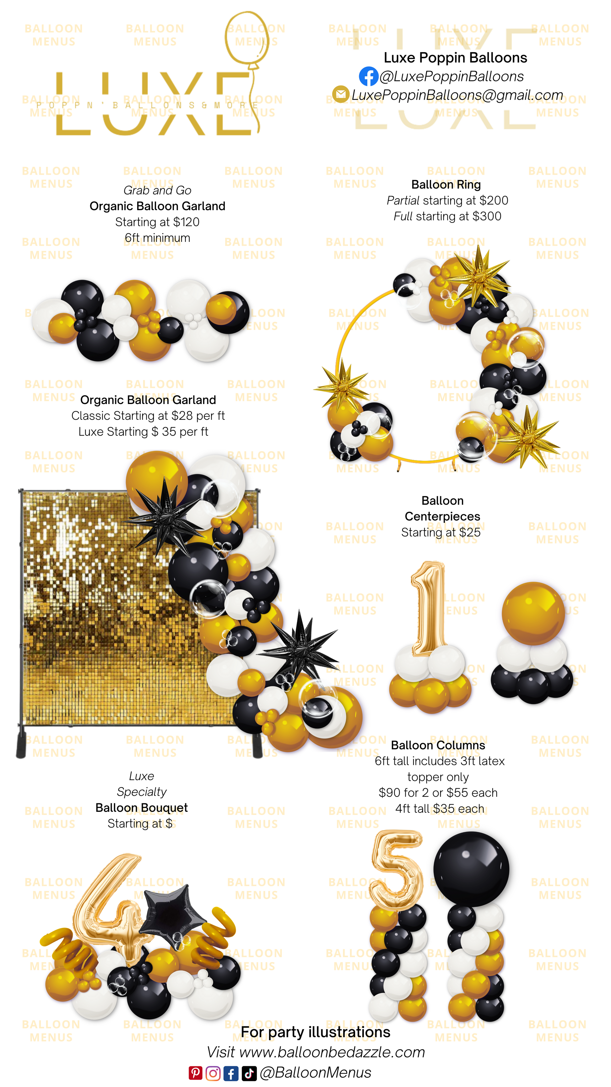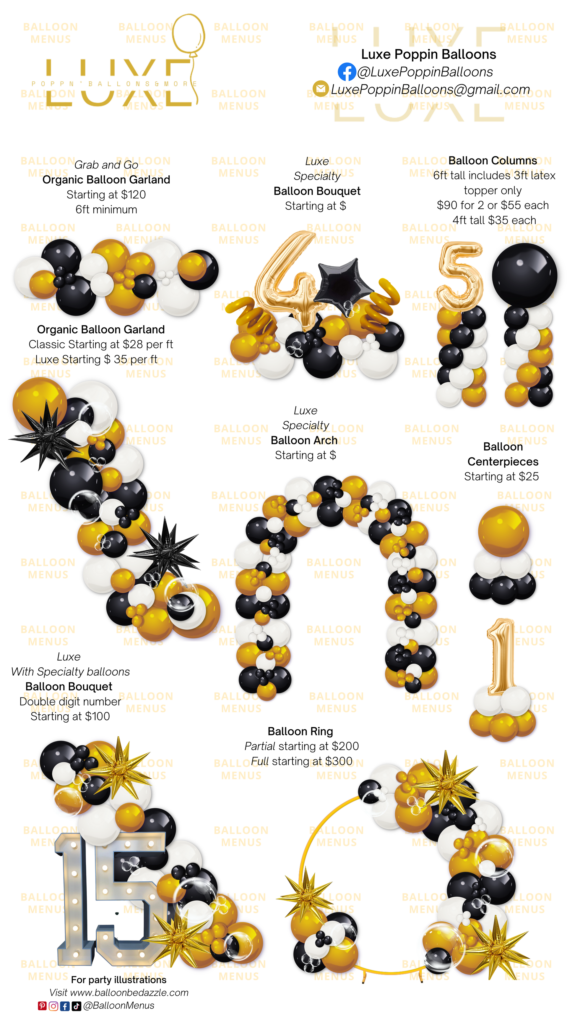 This is a custom, editable, downloadable balloon menu made specially for Luxe Poppin Balloons and is not for retail
