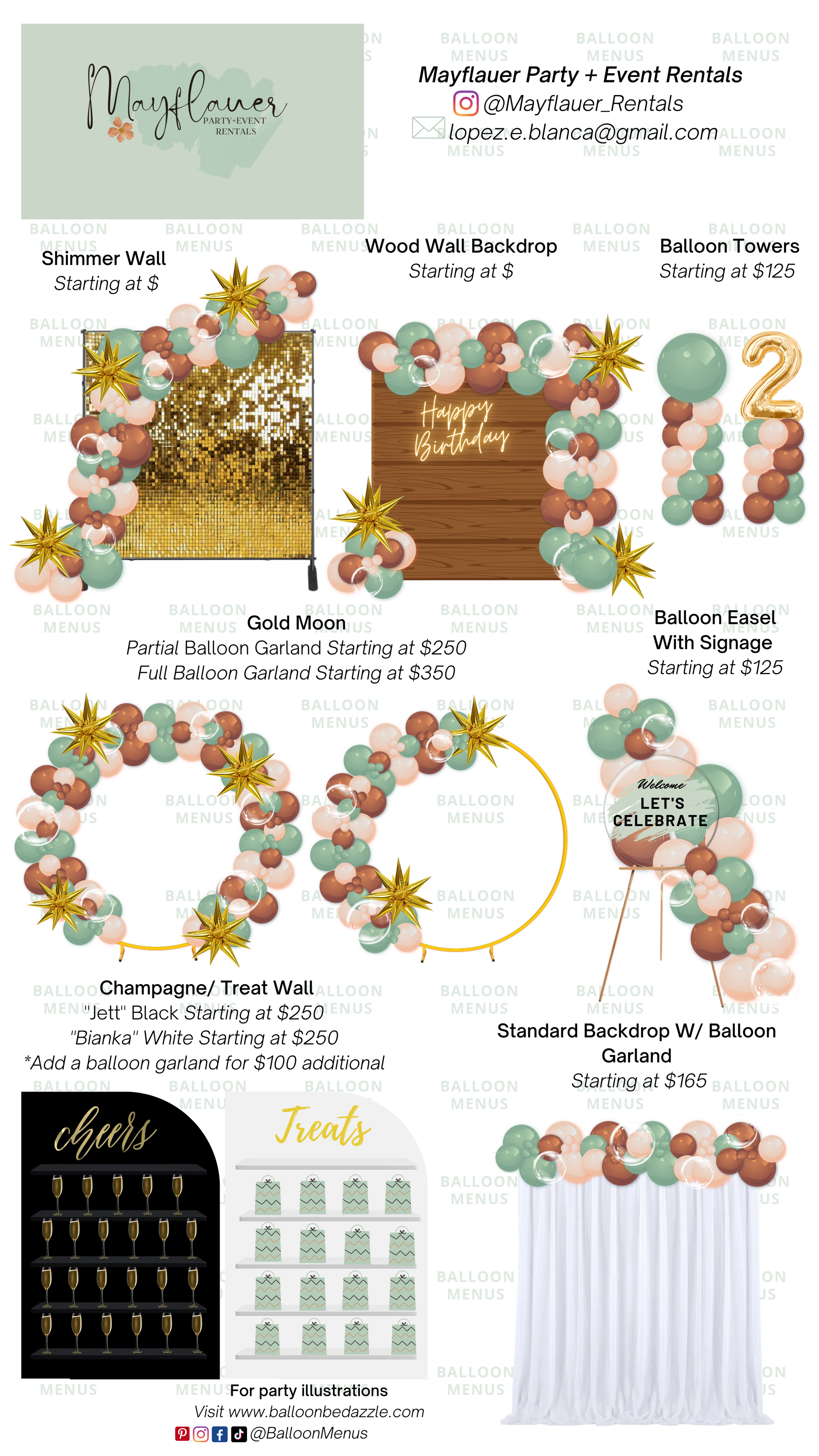 This is a custom, editable, downloadable balloon menu made specially for Mayflauer Party Plus Event Rentals and is not for retail