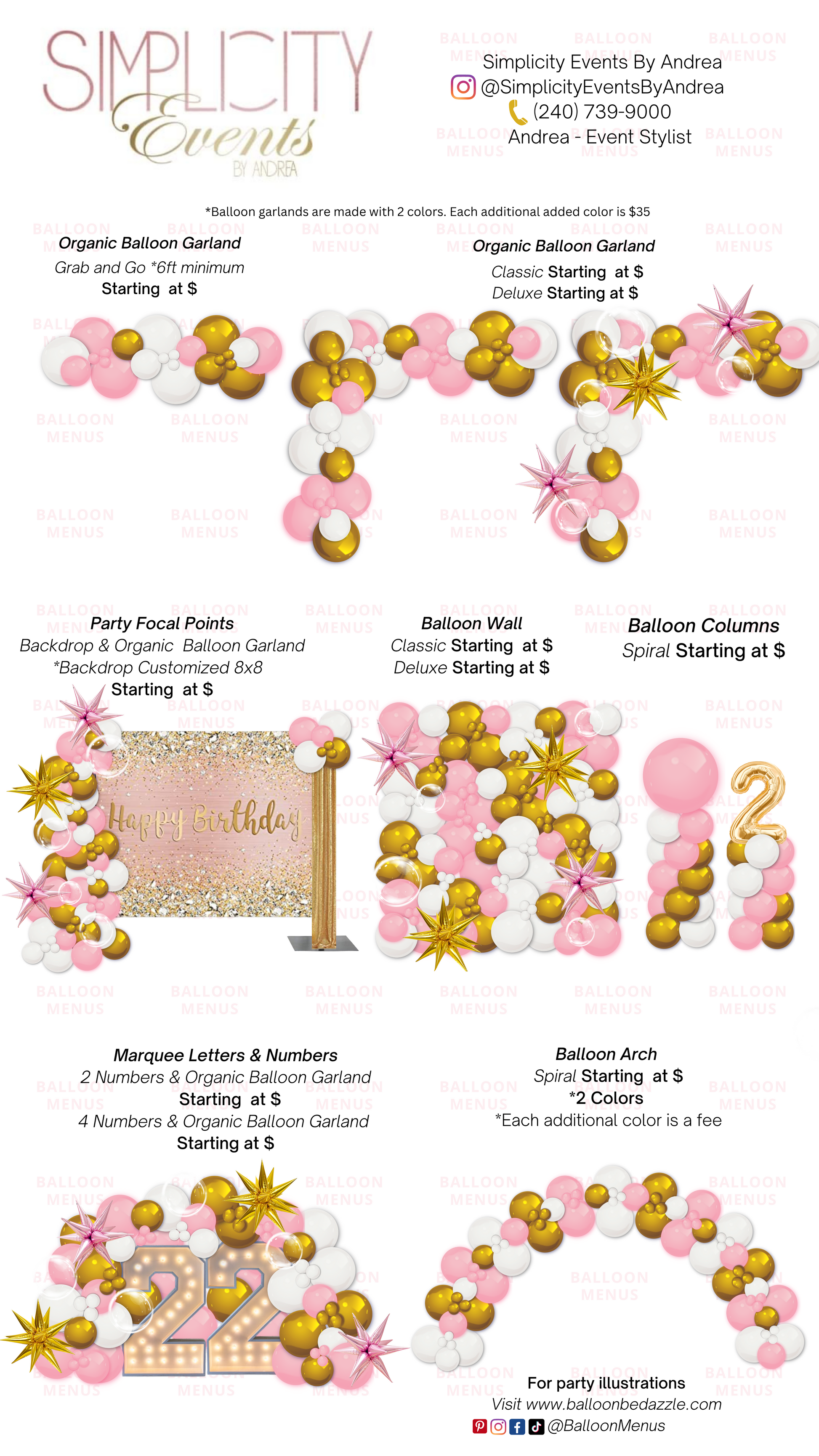 This is a custom, editable, downloadable balloon menu made specially for Simplicity Events By Andrea and is not for retail