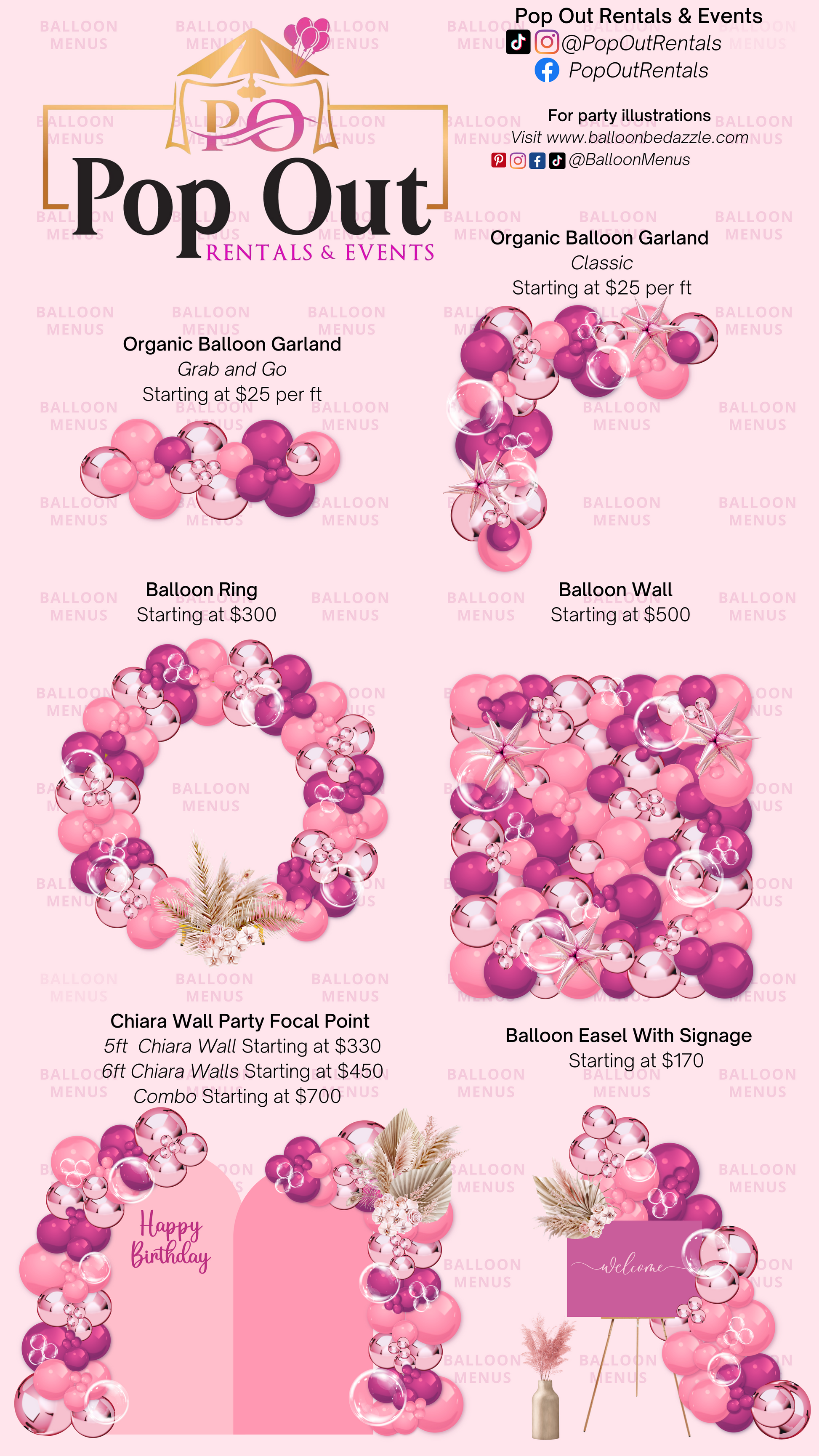 This is a custom, editable, downloadable balloon menu made specially for Pop Out Rentals And Events and is not for retail