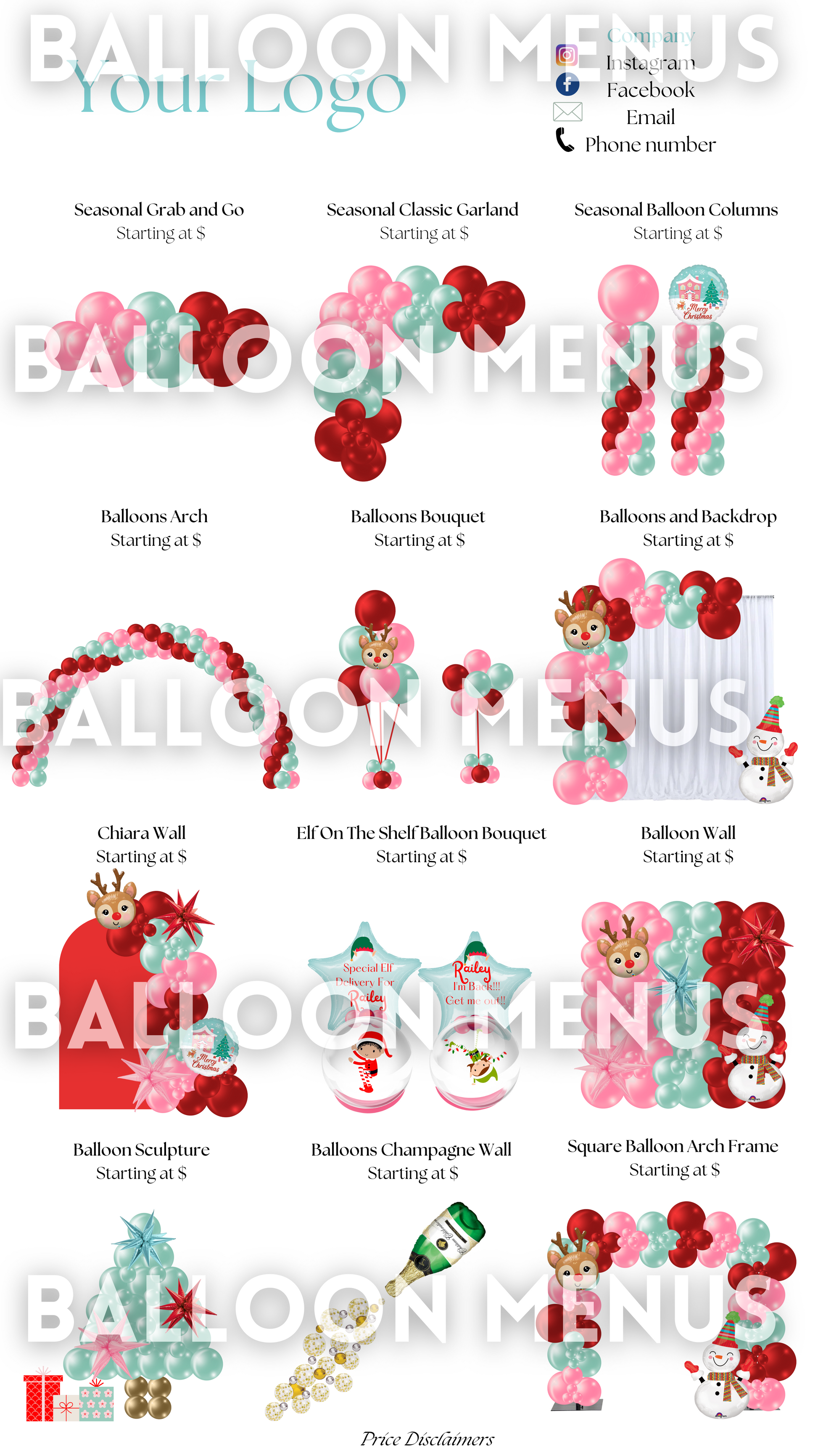 Premade Christmas Balloon Menu, Seasonal - Red, pink, mint