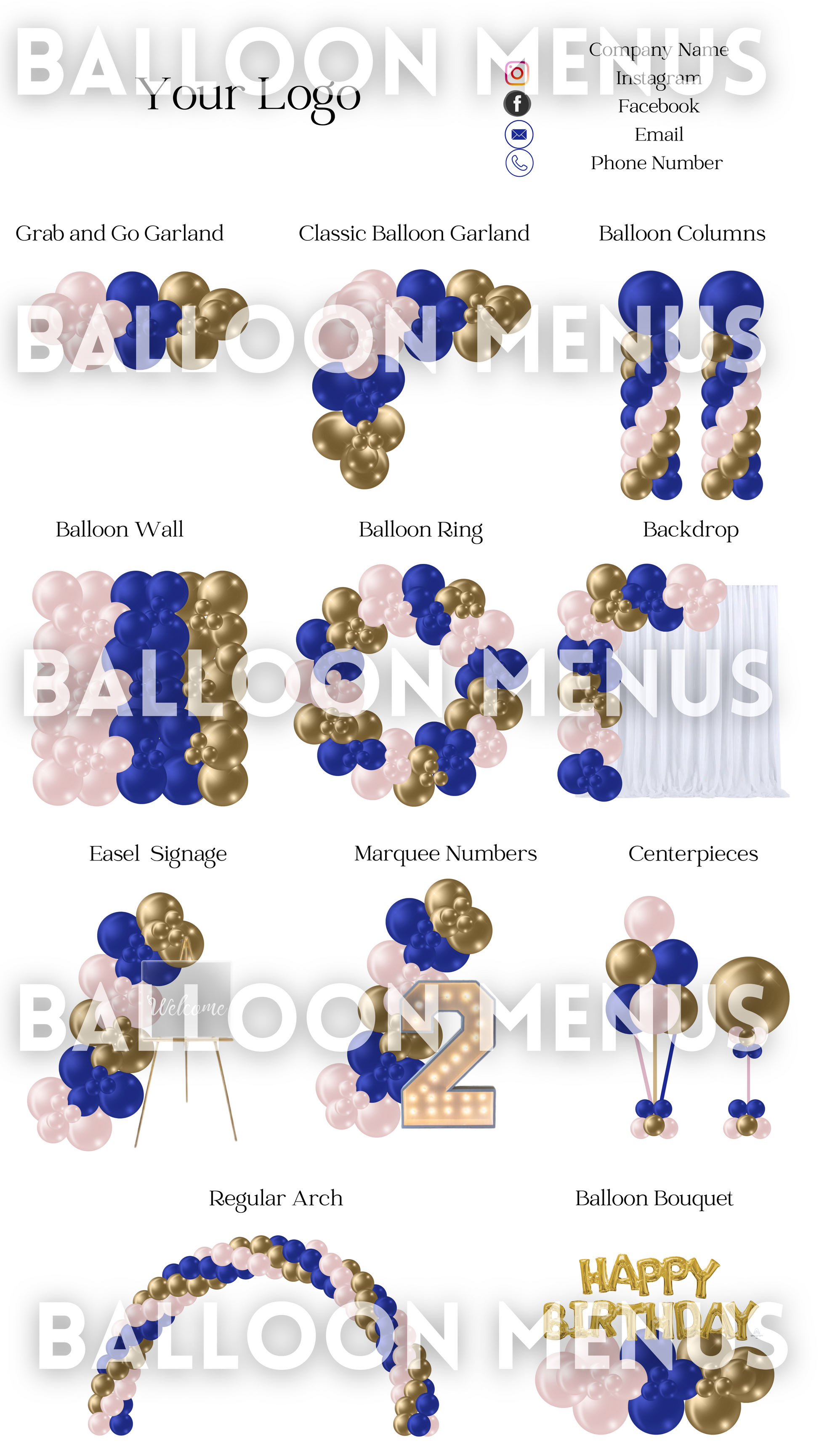 Premade Editable Balloon Menu (Royal Blue , Pink , Gold)