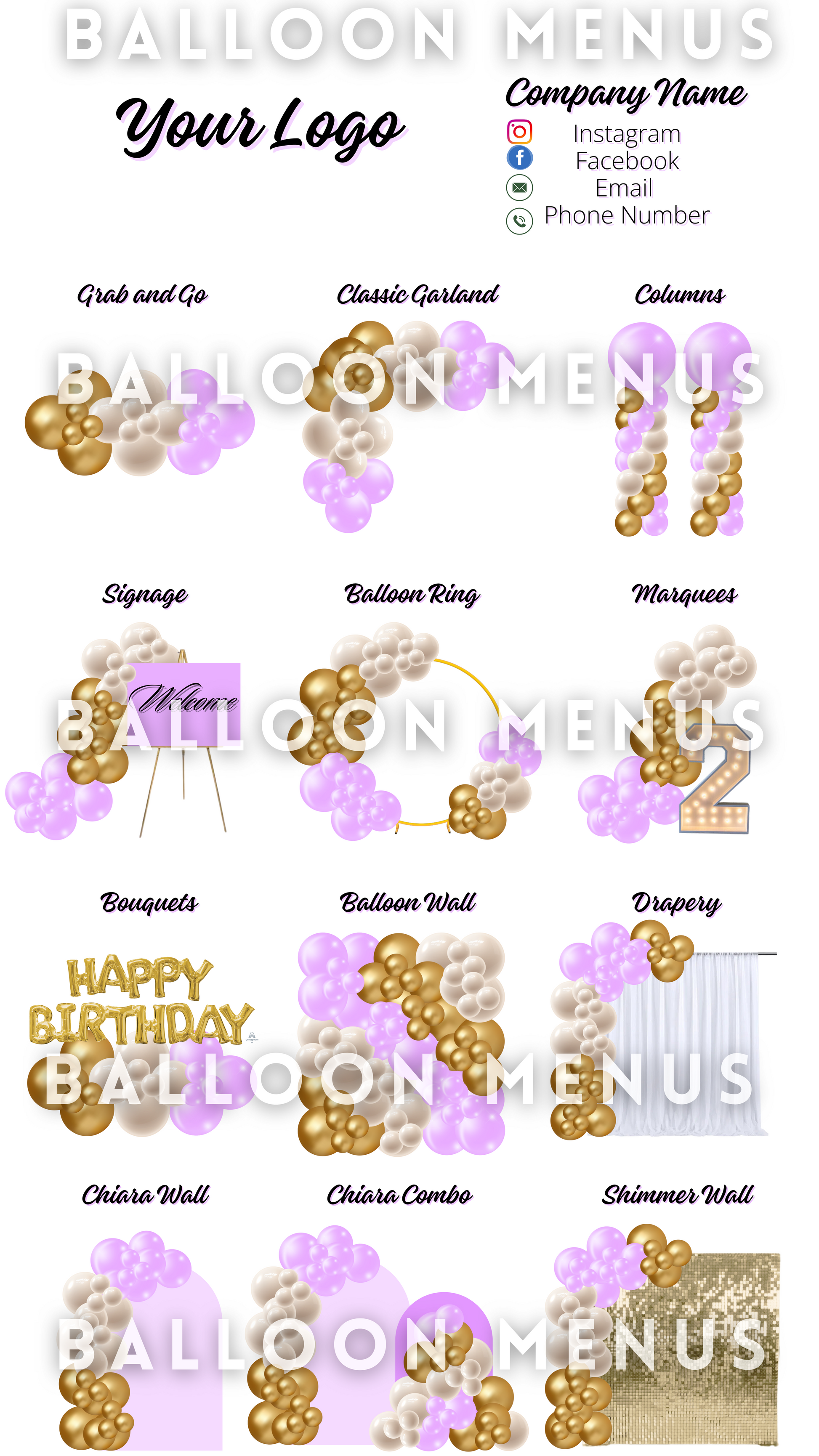 Premade Editable large Balloon Menu (Purple , Cream, Gold)