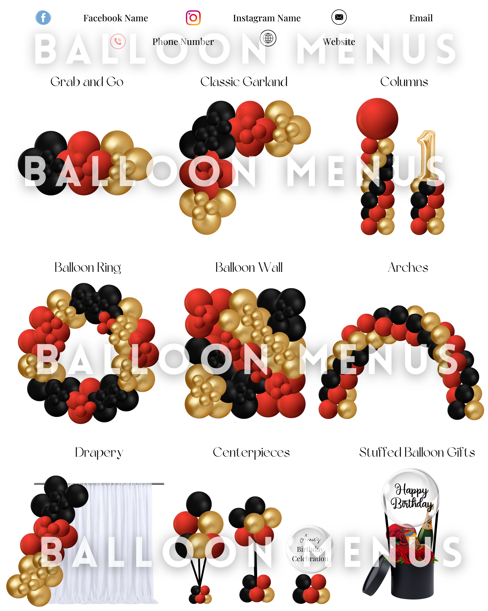 Premade Editable large Balloon Menu (Red, Black, Gold )