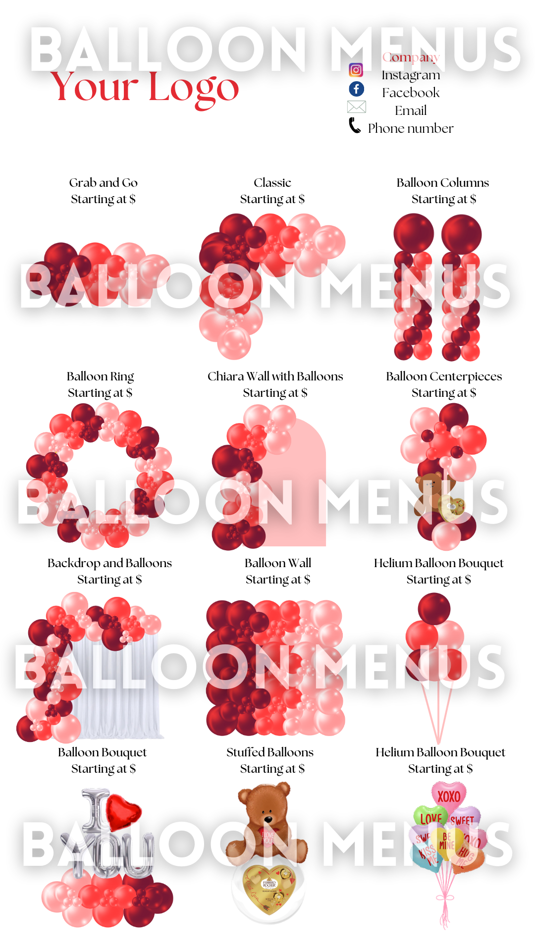 Make party planning easier and effortless with our Digital Balloon Menu! Designed to help party planners showcase their services and give clients a clear preview of offerings, this fully editable menu is a must-have tool for your business!