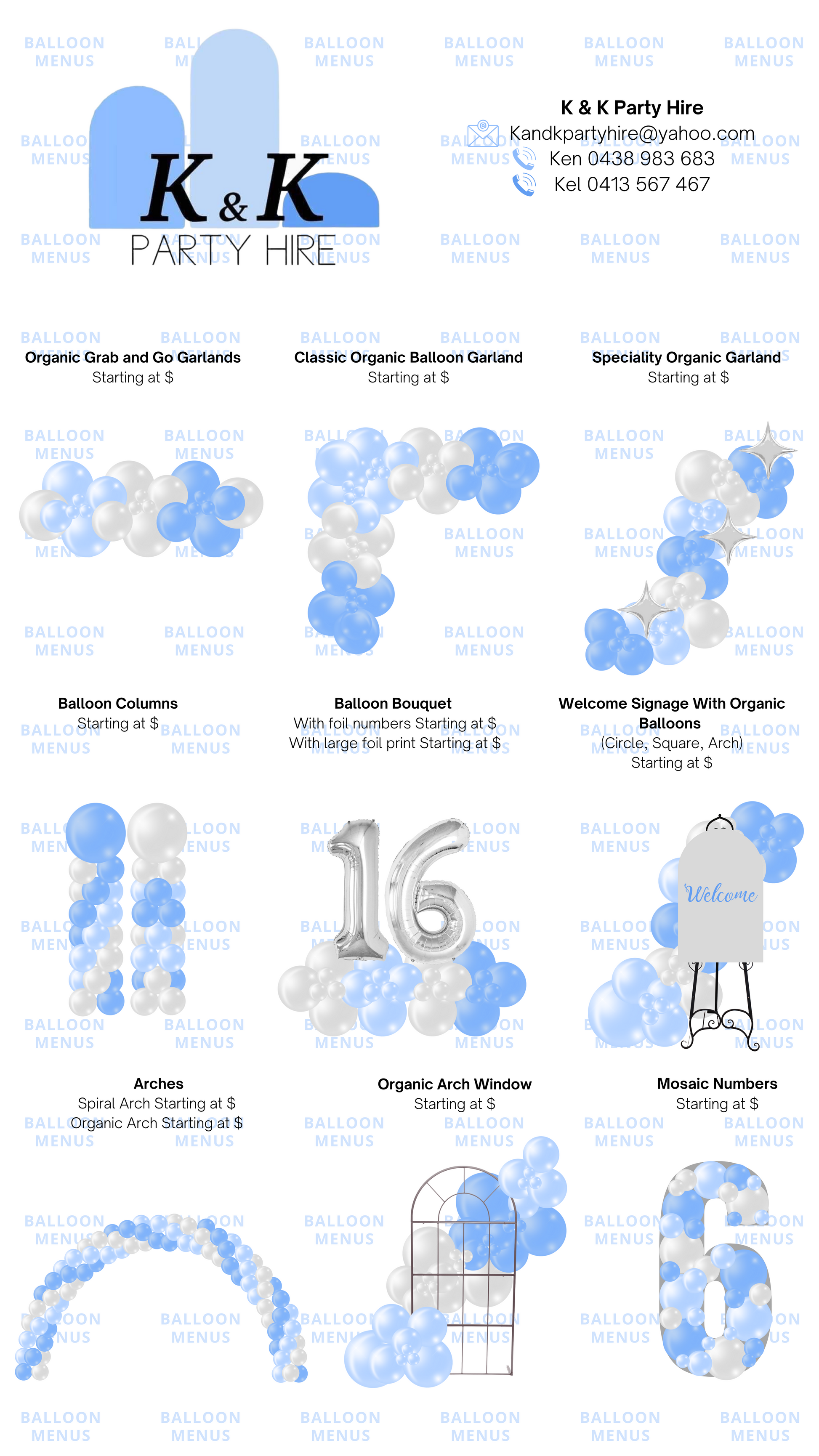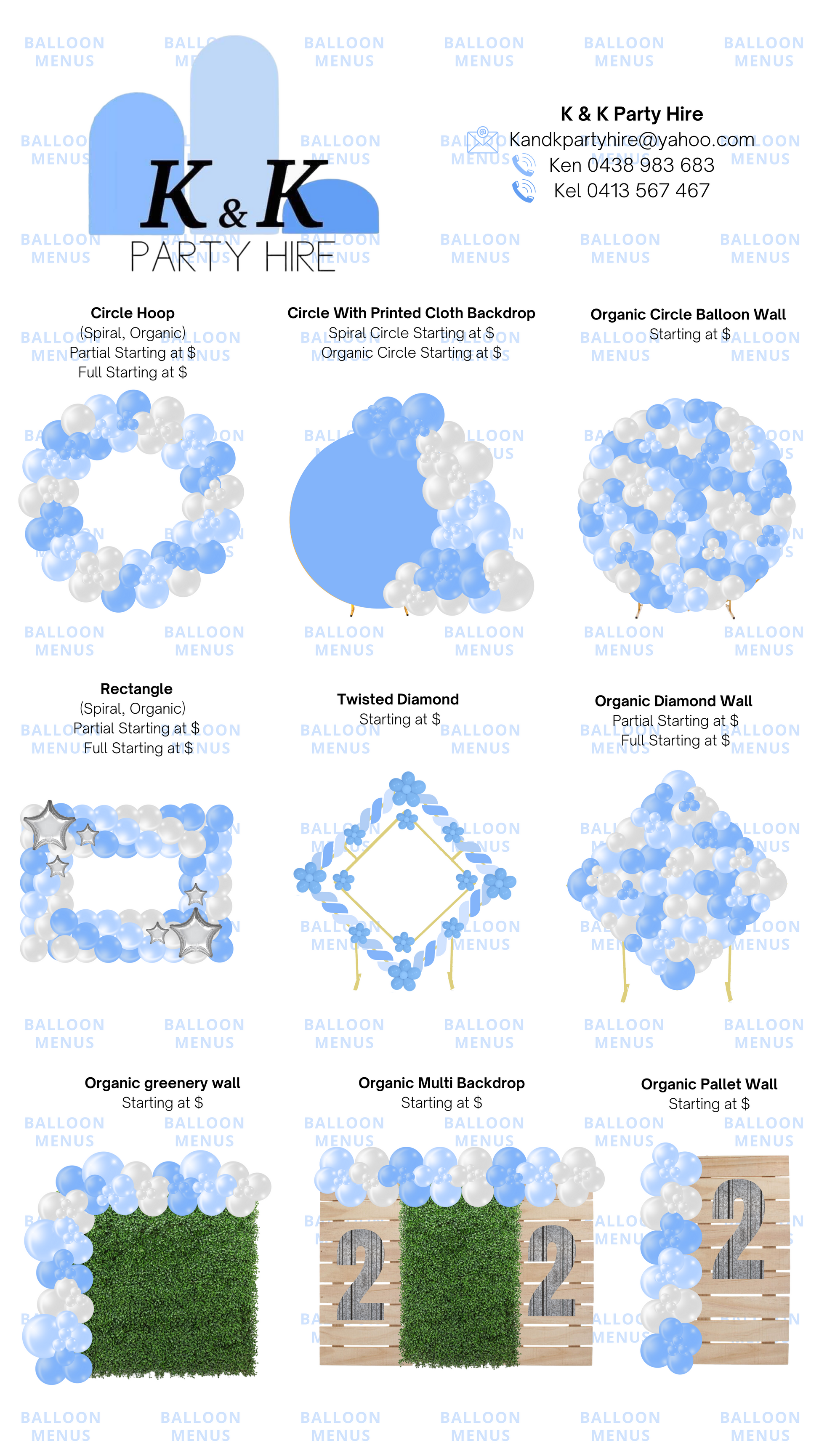 This is a custom, editable, downloadable balloon menu made specially for K&K Party Hire and is not for retail
