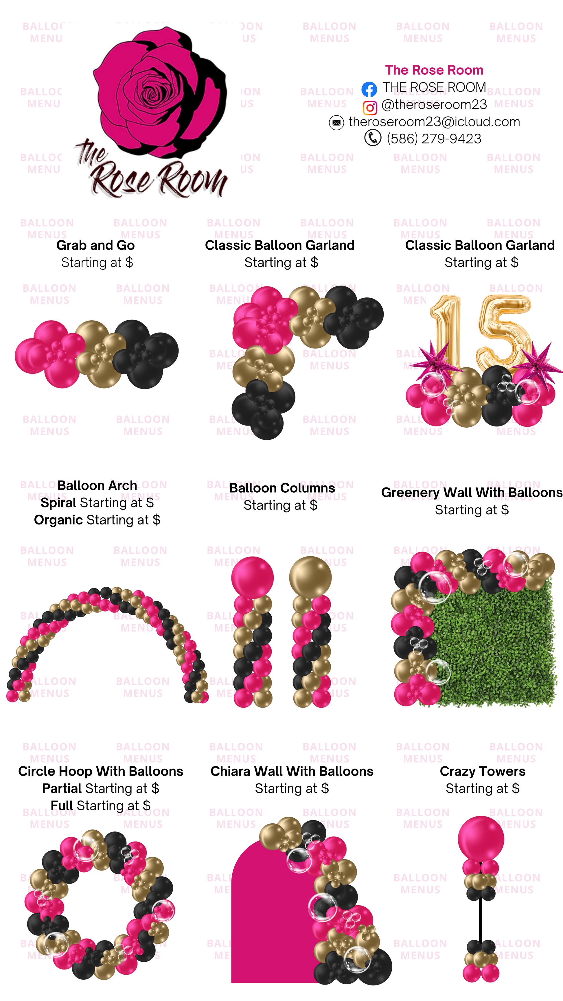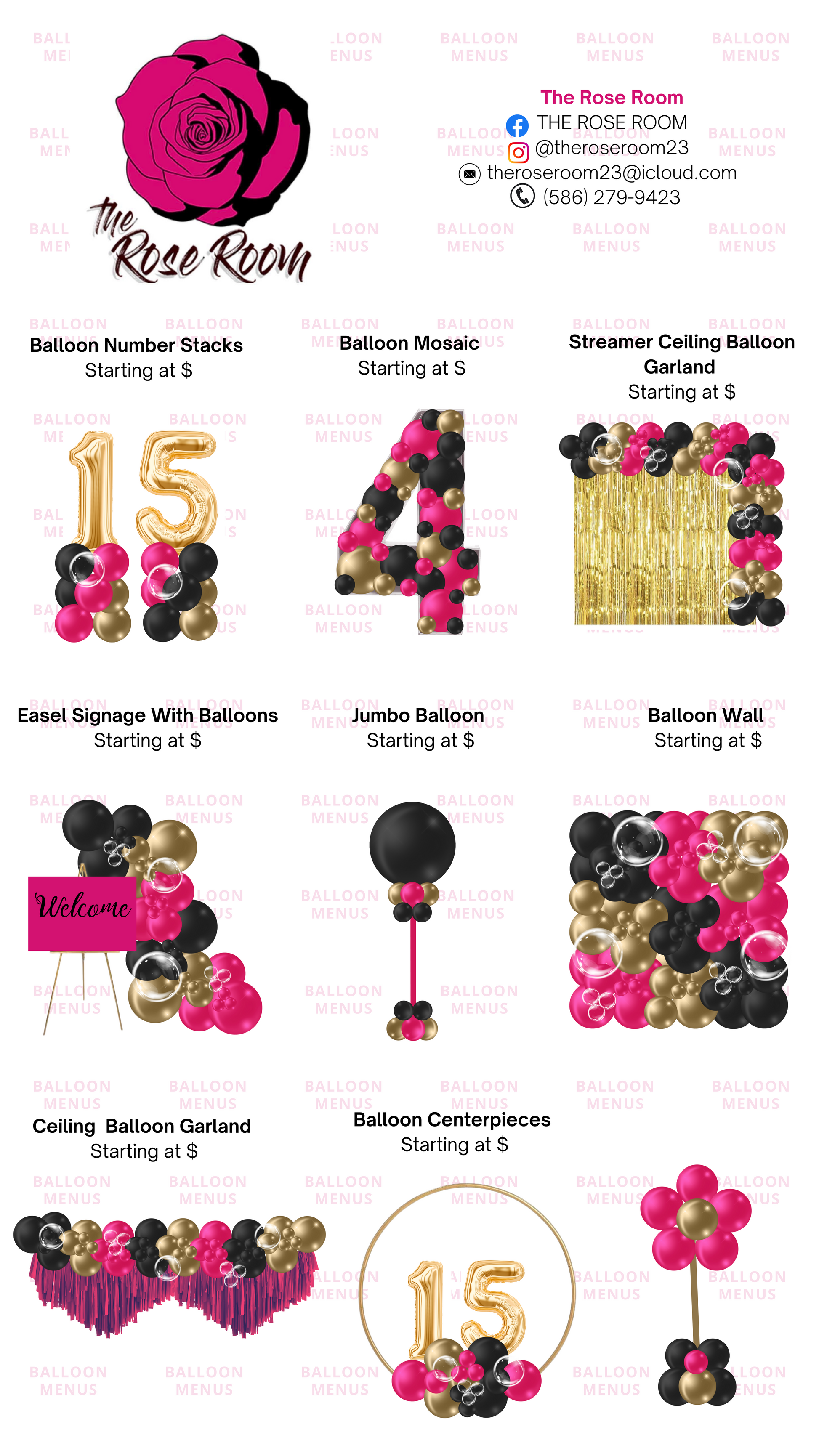 This is a custom, editable, downloadable balloon menu made specially for The Rose Room and is not for retail
