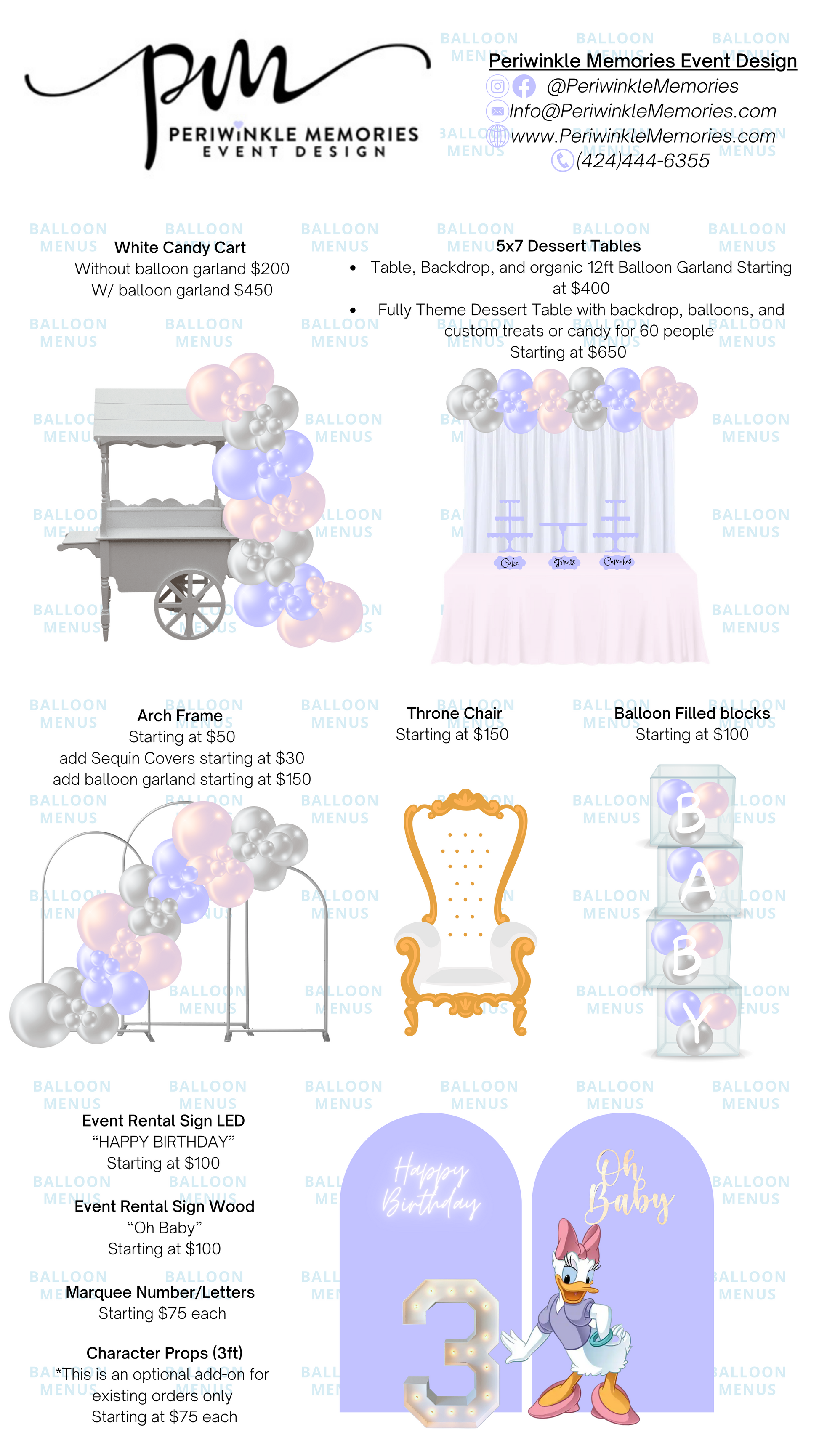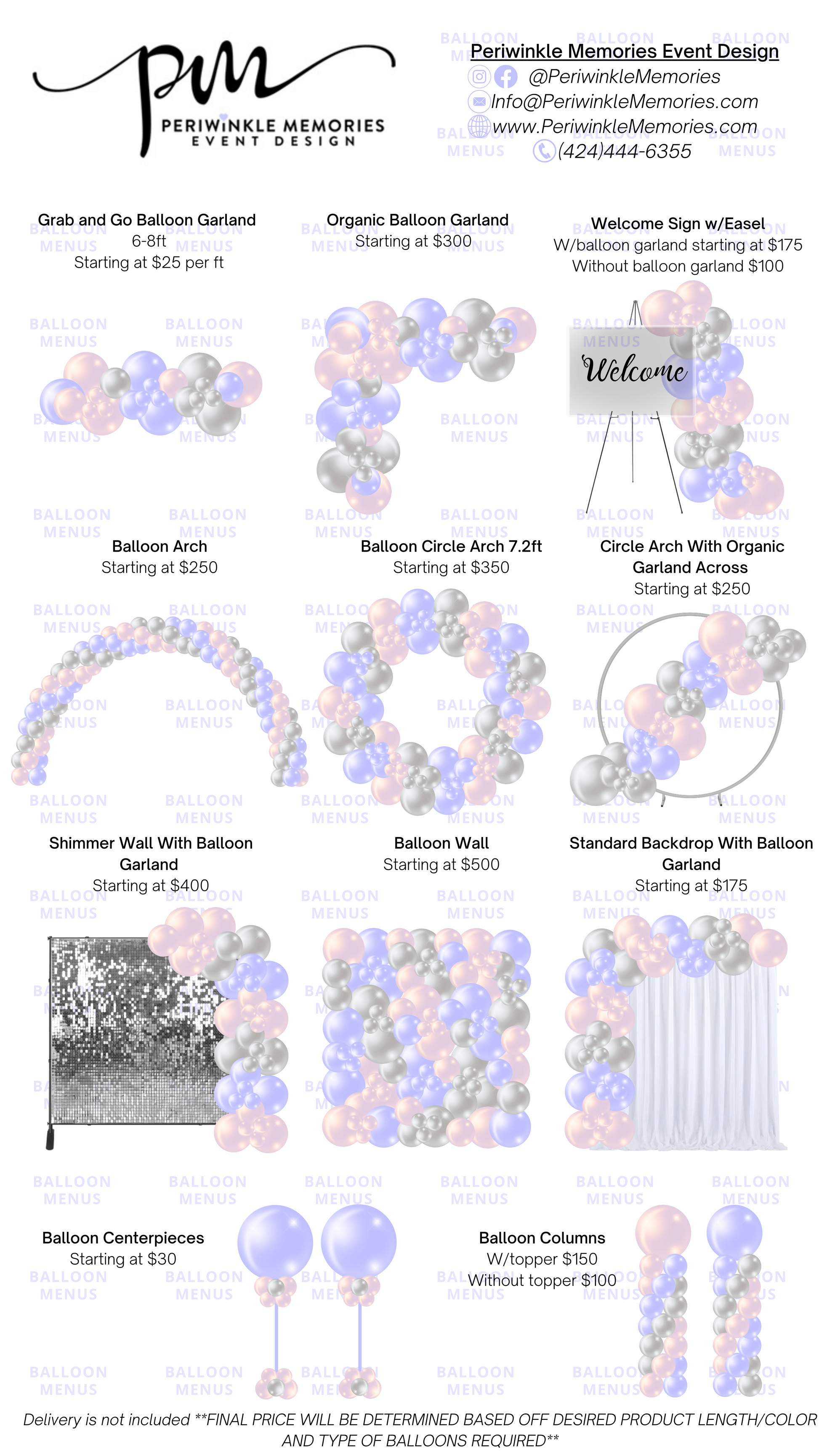 Periwinkle Memories Event Designs - Client Balloon Menu