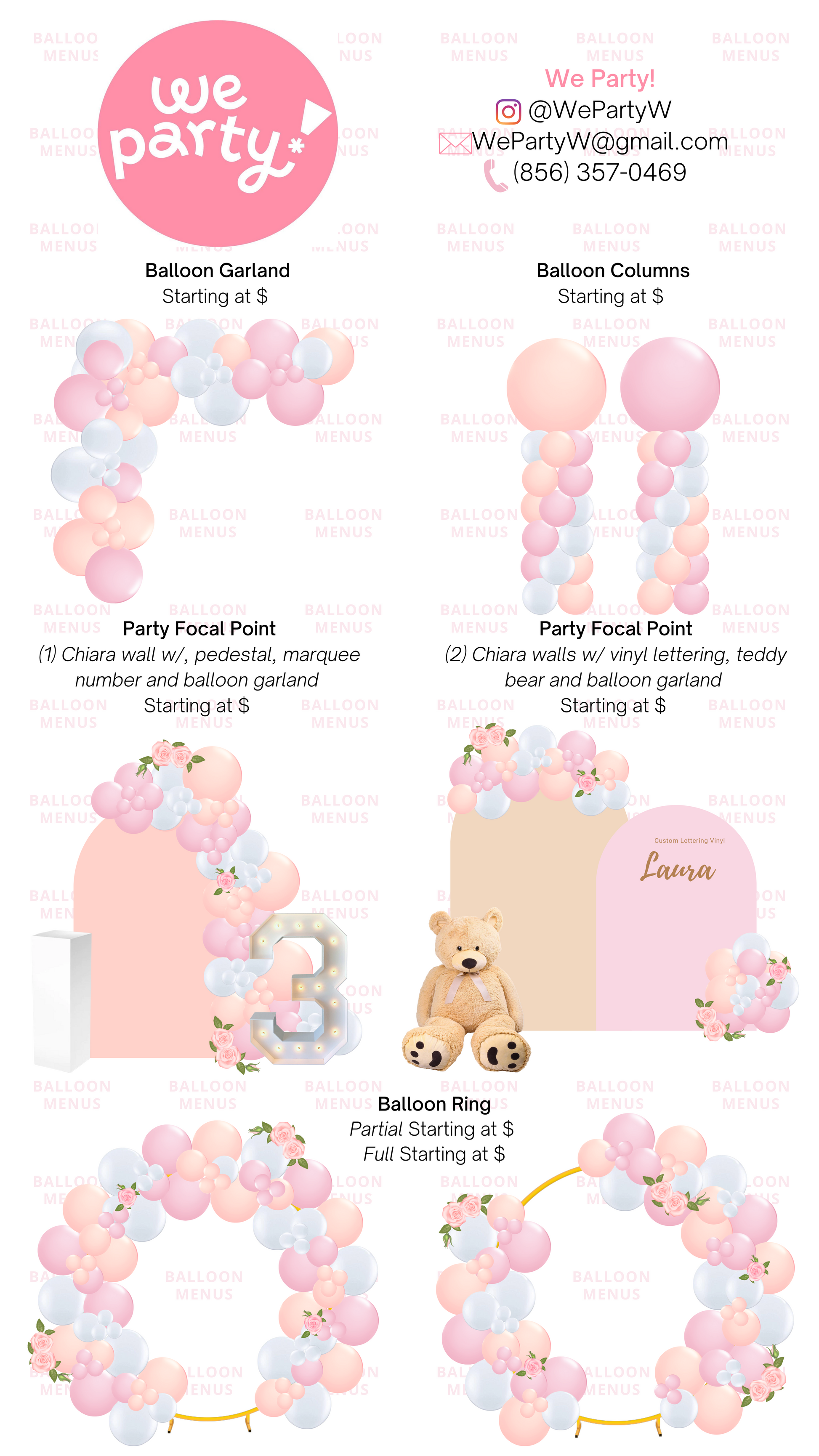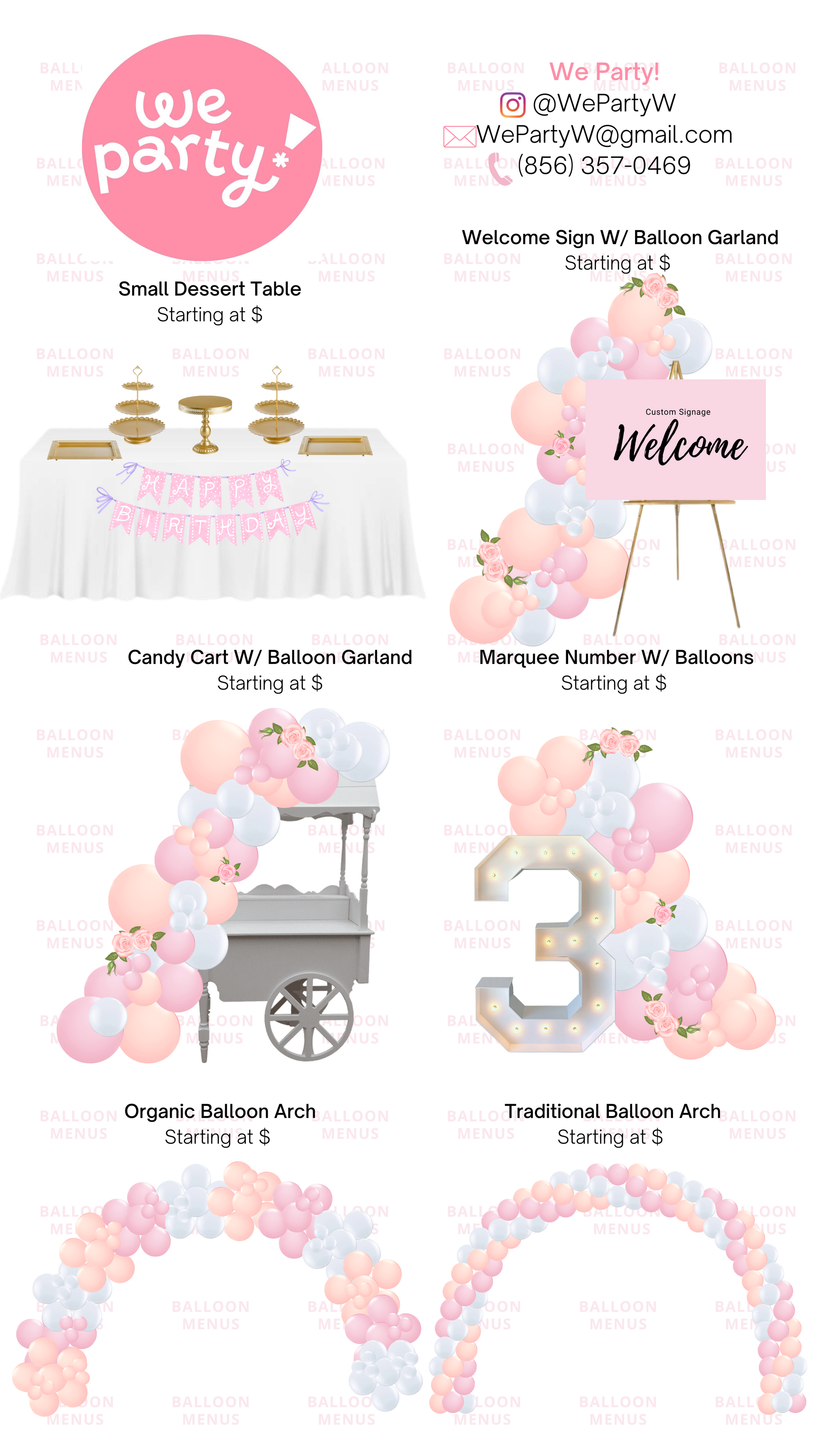 This is a custom, editable, downloadable balloon menu made specially for We Party! and is not for retail