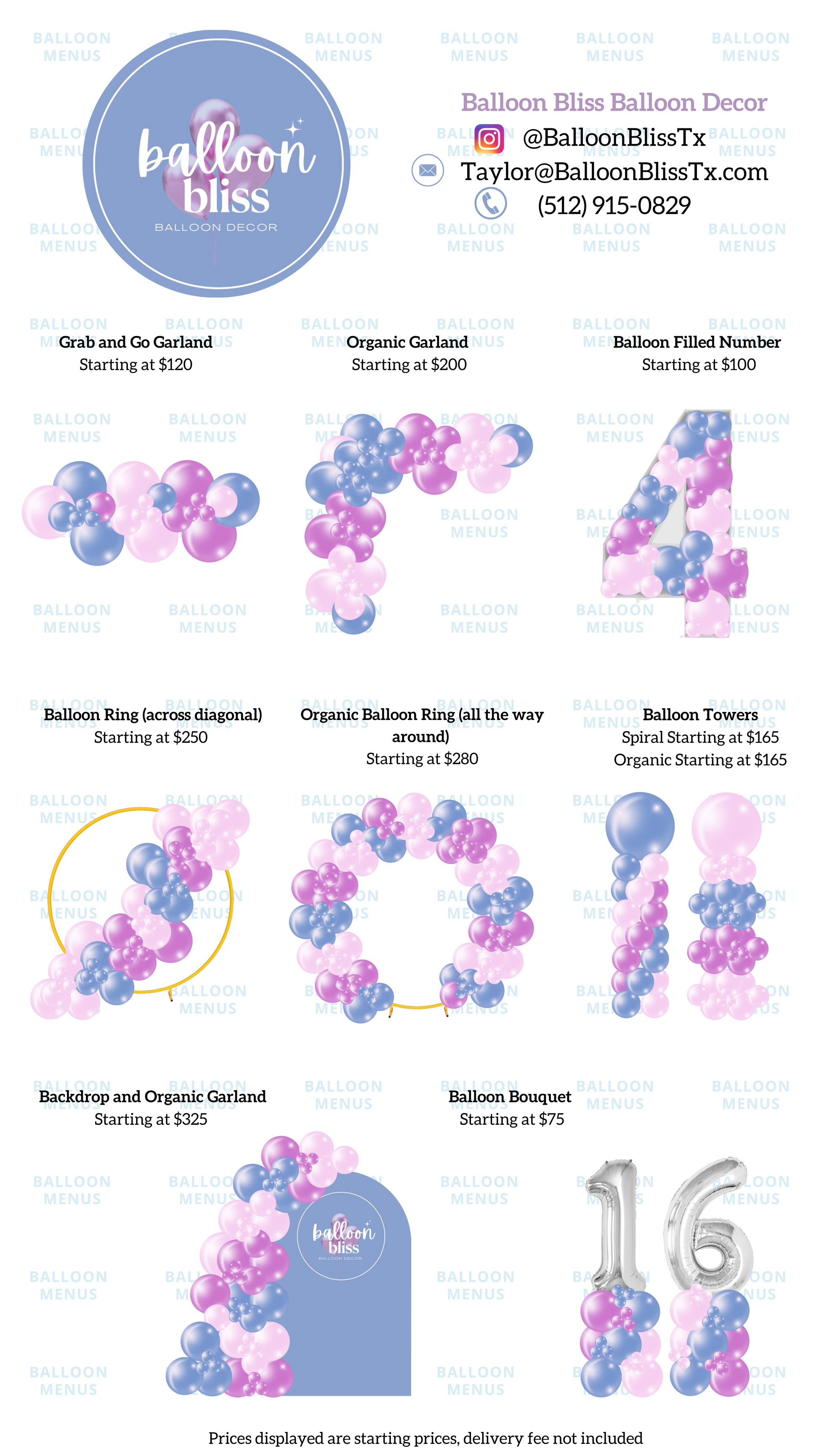 This is a custom, editable, downloadable balloon menu made specially for Balloon Bliss Balloon Decor and is not for retail
