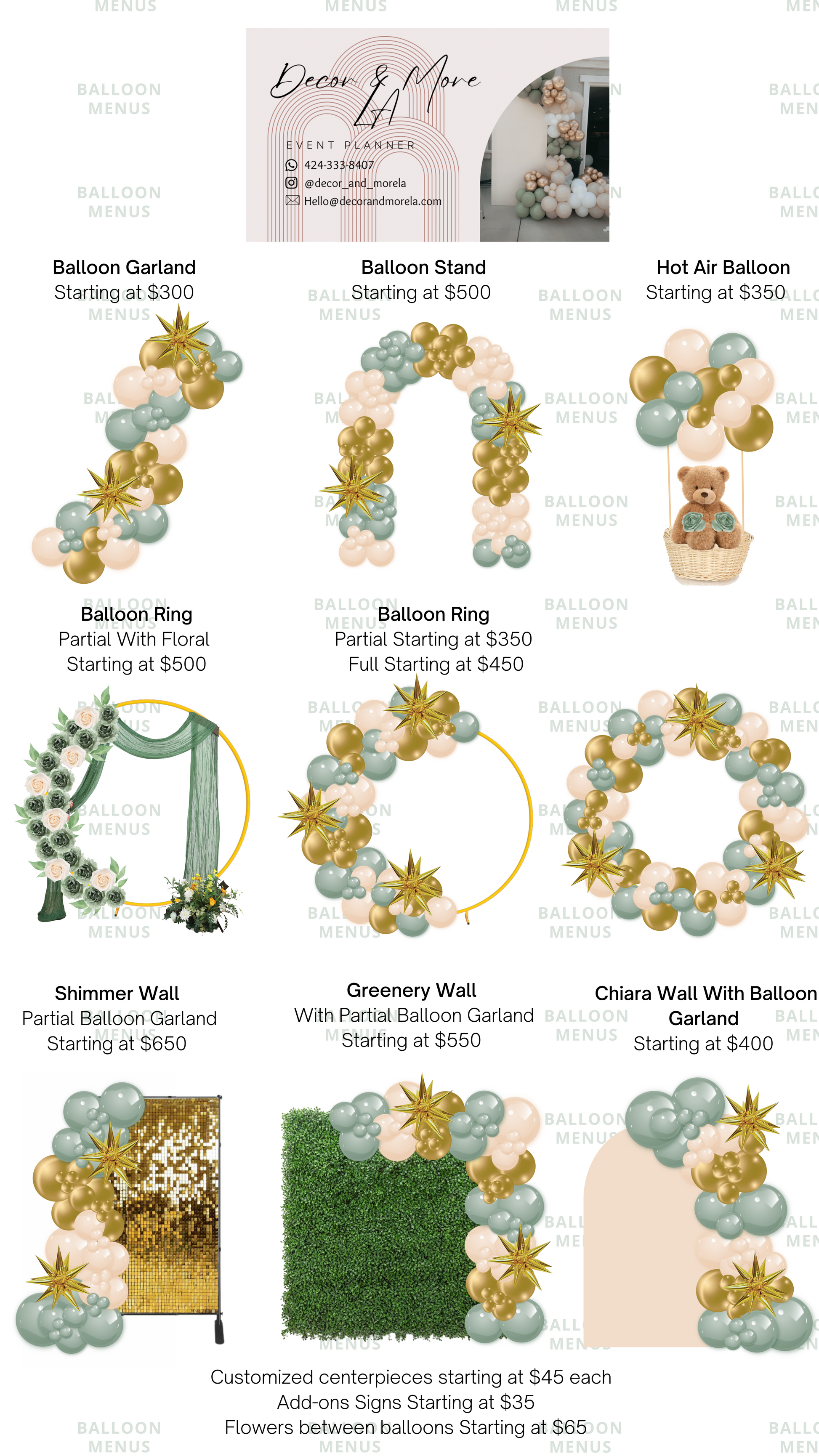 This is a custom, editable, downloadable balloon menu made specially for Decor & More LA and is not for retail