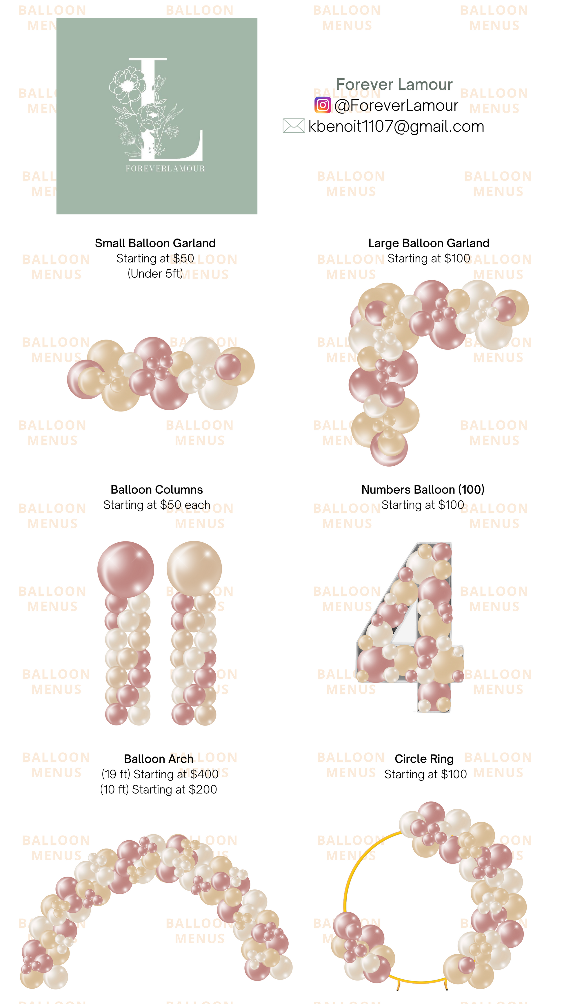 This is a custom, editable, downloadable balloon menu made specially for Forever Lamour and is not for retail