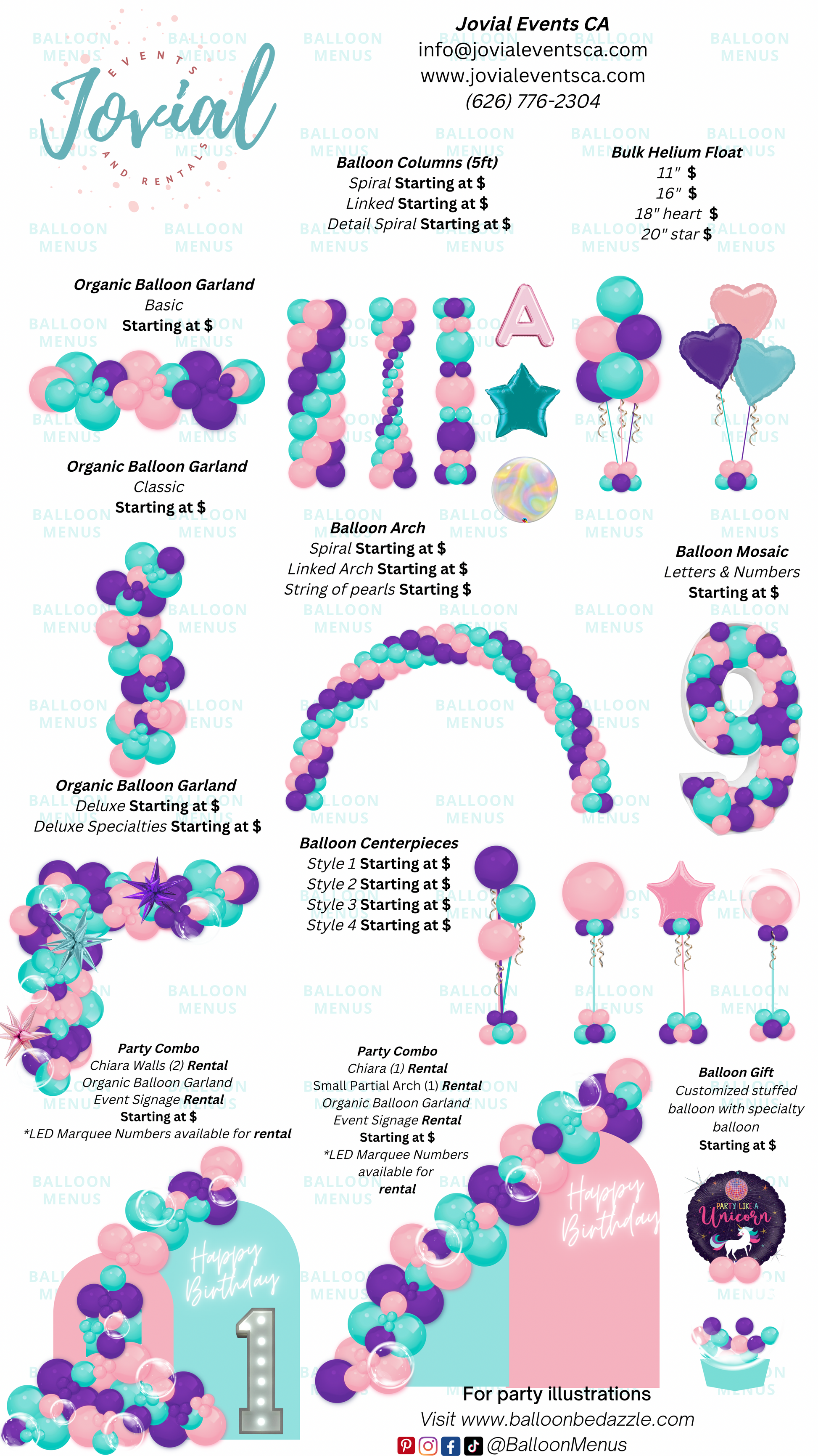 This is a custom, editable, downloadable balloon menu made specially for Jovial Events and is not for retail